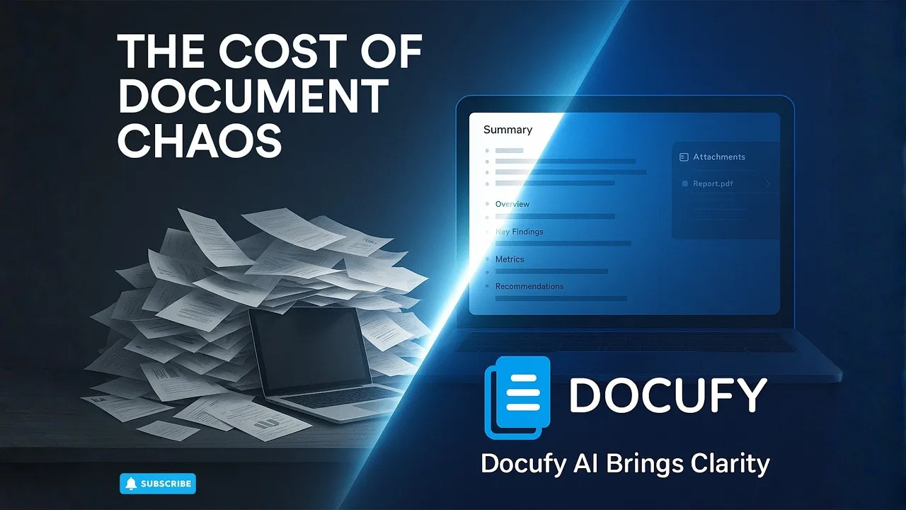 Docufy transforms workflows by instantly converting unstructured documents into structured, actionable intelligence unlocking faster decisions, lower operational cost & scalable automation